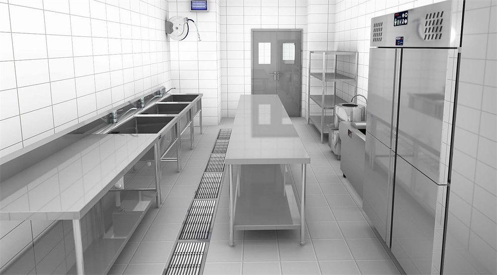 -提供足夠的工作臺、切菜板、洗菜池等,以不銹鋼材質為主。